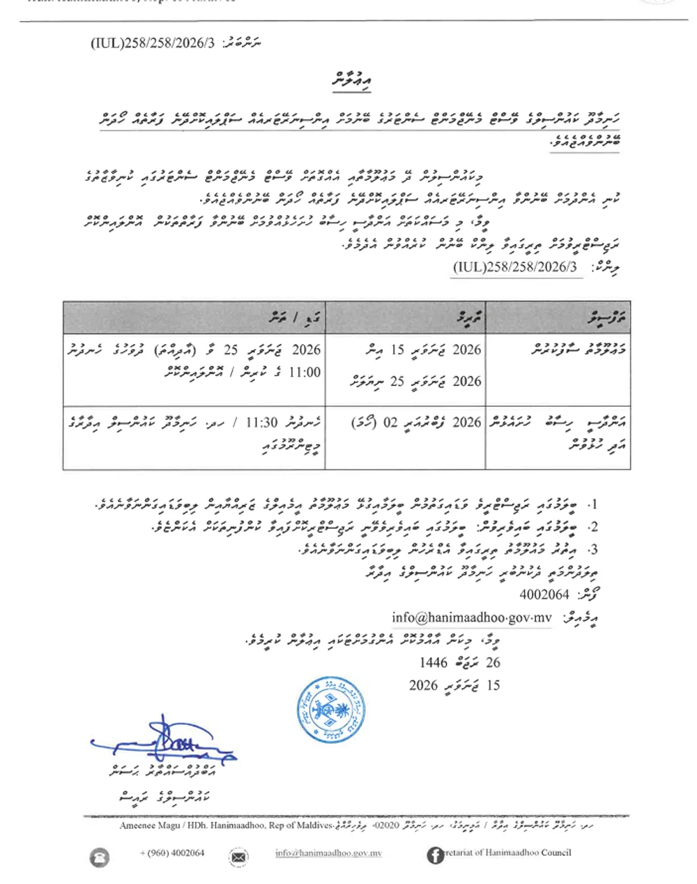 ހަނިމާދޫ ކައުންސިލްގެ ވޭސްޓް މެނޭޖްމަންޓް ސެންޓަރުގެ ބޭނުމަށް އިންސިނަރޭޓަރއެއް ސަޕްލައިކޮށްދޭނެ ފަރާތެއް ހޯދަން ބޭނުންވެއްޖެއެވެ.